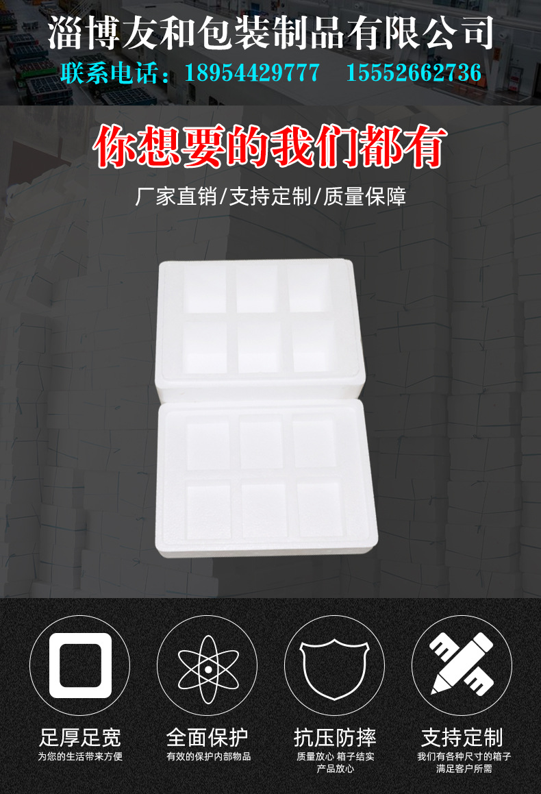 ????淄博友和包裝制品有限公司是專業(yè)的山東泡沫包裝箱加工廠家,本廠主要產(chǎn)品有:泡沫包裝箱,泡沫保鮮箱,水果蔬菜泡沫包裝箱,水果蔬菜泡沫保鮮箱,瓷磚泡沫包裝箱等,產(chǎn)品暢銷全國,深受用戶好評。泡沫包裝定做可以聯(lián)系我們網(wǎng)站 http://m.emldi.com/ 上電話,我們會第一時間跟您聯(lián)系。
